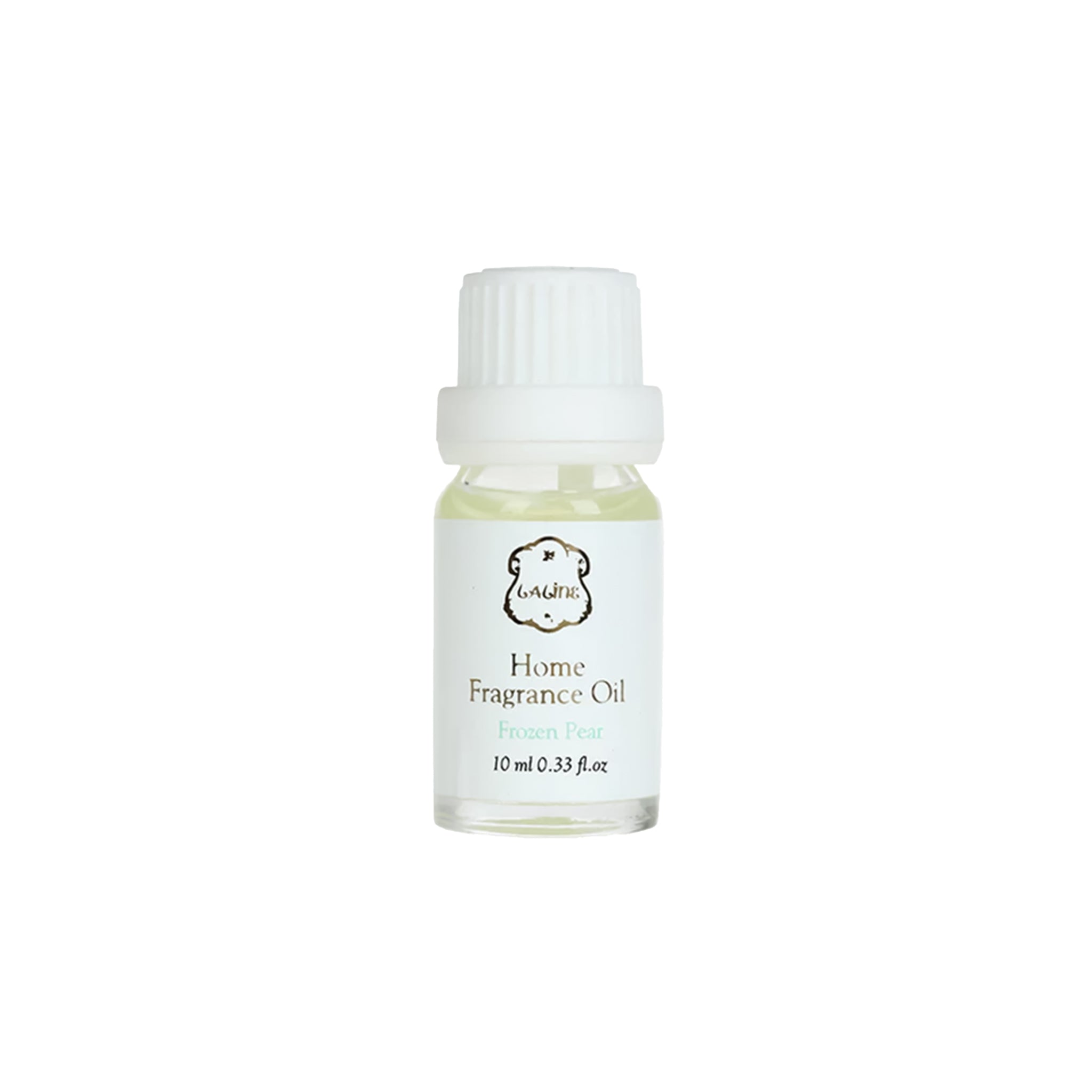 Frozen Pear essential oil is used to fill a home diffuser. It features a refreshing scent of magnolia, pear, and green mandarin that will linger in your space.